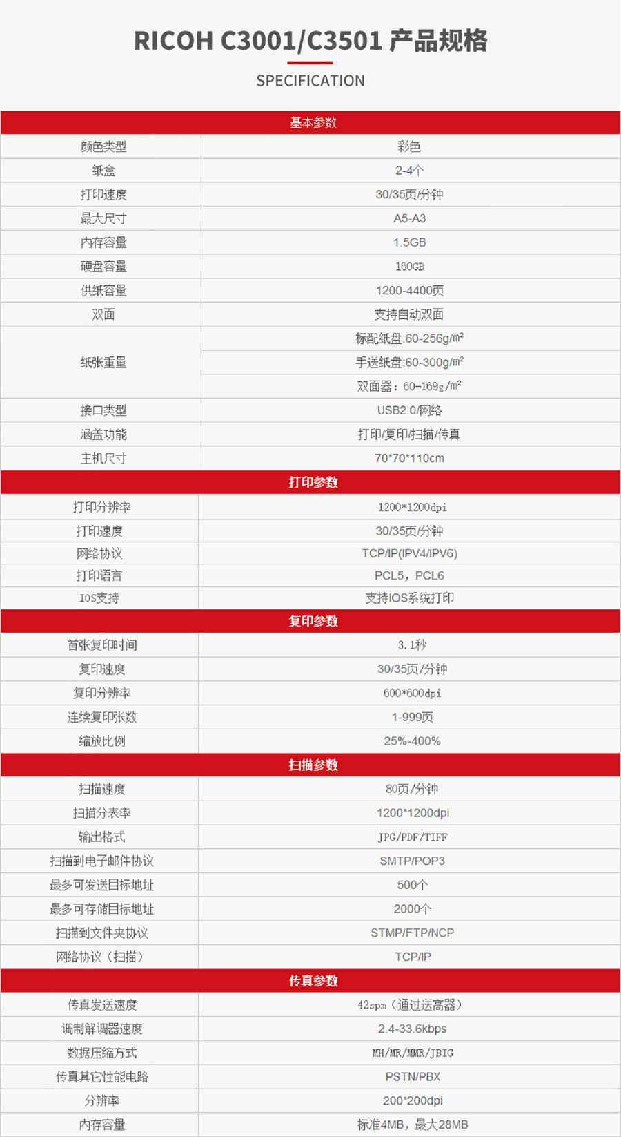 方案一:租金199元每月,每月包印黑白4000張,彩色50張;超出黑白0.05元每張,超出彩色0.5元每張;方案二:租金299元每月,每月包印黑白5000張,彩色100張;超出黑白0.45元每張,超出彩色0.045元每張。功能:黑白、彩色雙面打印,復印,掃描數碼復合機